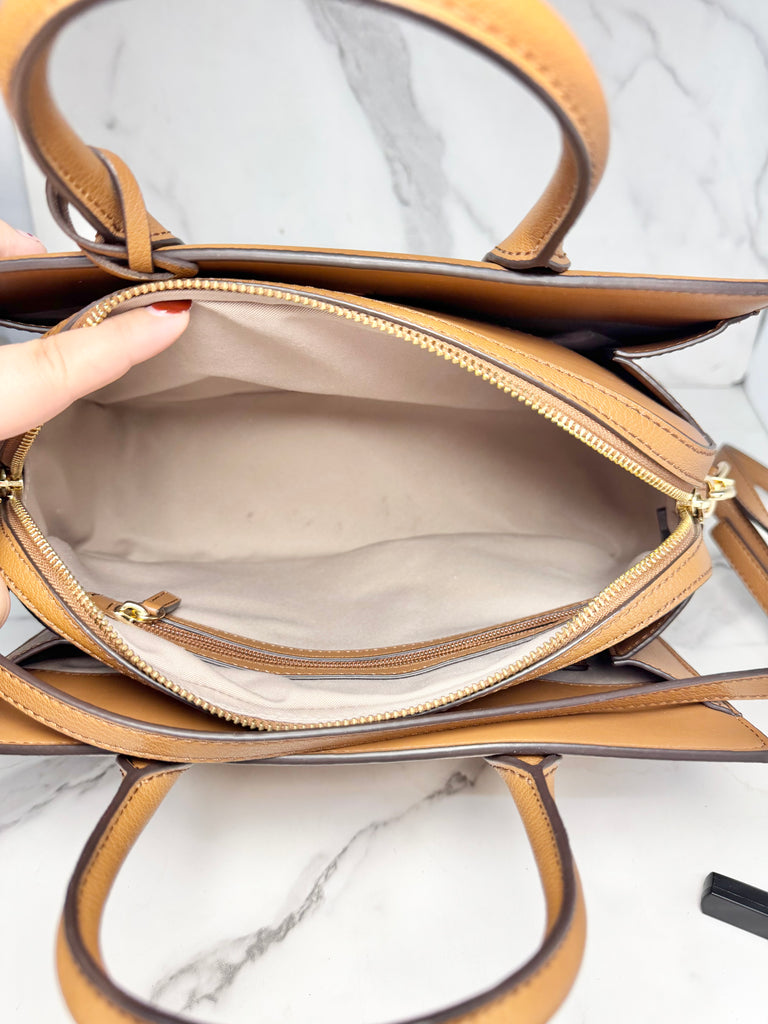 This Michael Kors Tote is featured in the shade "Luggage". This item is in great condition, with some minor interior wear. See photos.